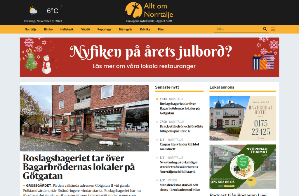 The local newspaper “Allt om Norrtälje” implemented the Independence News Comprehensive Solution in 2023. They report from the area around Norrtälje, in Uppland, Sweden.